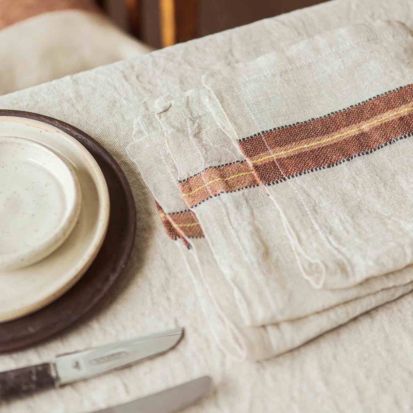 Featuring Libeco's classic open weave napkin- A dining table adorned with linen is always elegant and appropriate. When the linen is crisply ironed it is smart and sophisticated but a more casual, relaxed feel is created when it is simply left slightly rumpled.