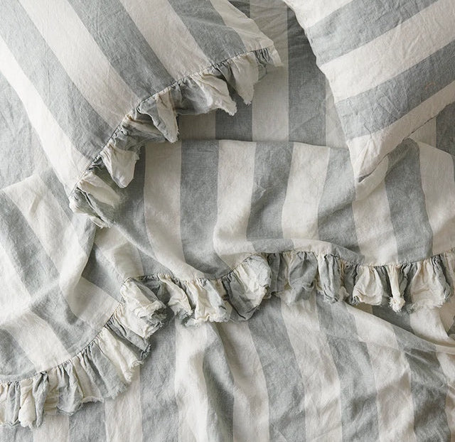 Fog Stripe Ruffle Flat Sheet